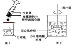 12、右图1表示制备固定化酵母细胞的有关操作,图2是利用固定化酵母细胞进行酒精发酵的示意图,下列叙述不正确的是