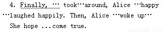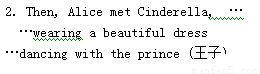 Alice followed the rabbit, and fell into a big hole, then she came to a wonderland. She found a beautiful garden and a beautiful castle (城堡) here. She met three beautiful girls, Snow White, Cinderella, the Match girl.