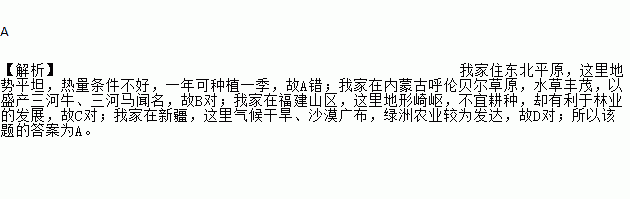 A. 我家住东北平原,这里地势平坦,热量条件好,一年可种植三季