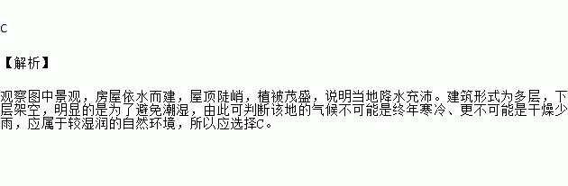 读下图,从图中民居你能看出当地的自然环境有什么特点( )