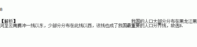 A. 漠河—腾冲线 B. 黑河—腾冲线 C. 黑河—昆明线 D. 漠河—昆明线