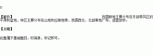 C. 南方的山地、丘陵 D. 东部湿润、半湿润区的平原和低缓的丘陵