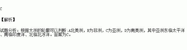 下图中濒临太平洋、北冰洋、印度洋的大洲是( )