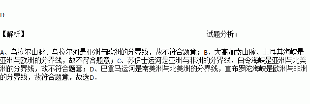 A. 乌拉尔山脉、乌拉尔河 B. 大高加索山脉、土耳其海峡