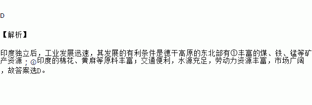 印度独立后,工业发展迅速,其发展的有利条件是( )。