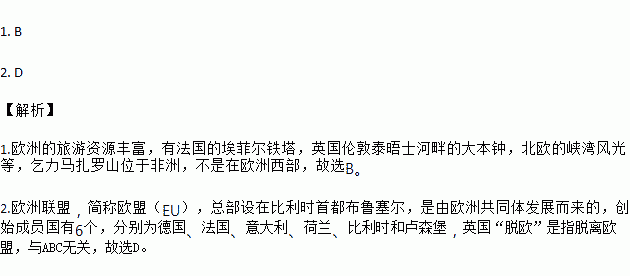 2.英国“脱欧”是指脱离下列哪个国际组织( )