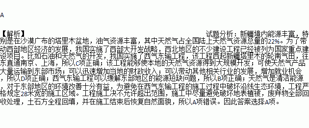 C. 该工程西起新疆,东到上海 D. 能增加当地的收入和就业机会