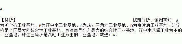 下列四幅图中,为我国最大的综合性工业基地的是( )