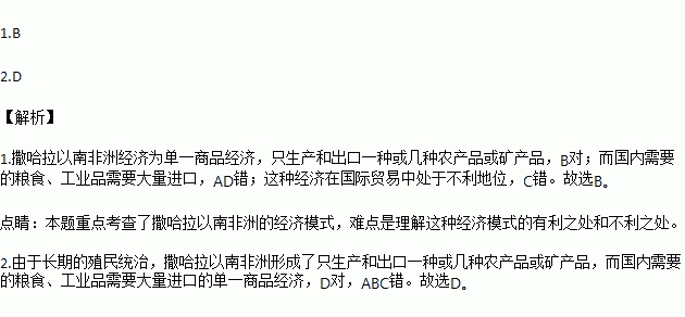 1.下列关于撤哈拉以南非洲对外贸易的叙述正确的是 ( )