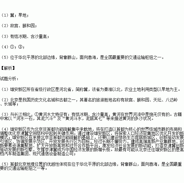 (1)雄安新区所在省级行政区的简称是_______,该省的农业土地利用类型以_______为主。