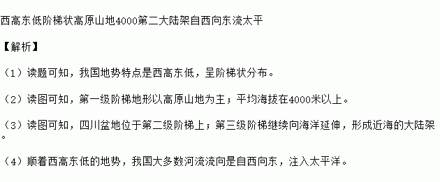 (3)四川盆地位于_______级阶梯上;第三级阶梯继续向东延伸到近海海底,其地形称为______。