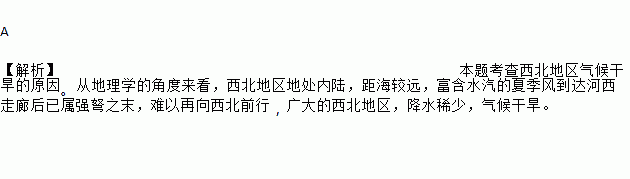 A. 距海较远 B. 温度较高 C. 纬度较高 D. 海拔较高