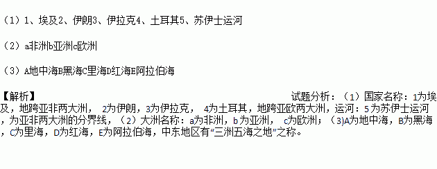 2.图中数字所代表的地理事物搭配不正确的是( )