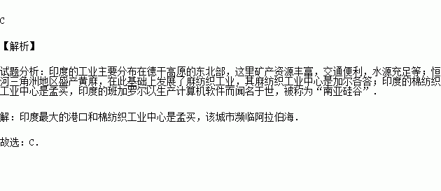 A.加尔各答 B.班加罗尔 C.孟买 D.新德里