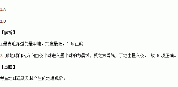 2.发生日食的这天,在微信图所示四地中,正值傍晚的是( )