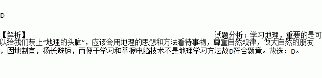A. 会用地理的思想和方法看待事物 B. 尊重自然规律,做大自然的朋友