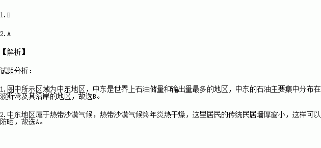 A.地中海及其沿岸地区 B.波斯湾及其沿岸地区