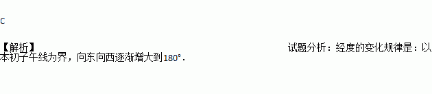 小明到英国格林尼治天文台旧址旅游时,他两脚跨在本初子午线地标的两侧,张开双手表示东经和西经,此时东经和西经的度数分别向东、向西变化规律是