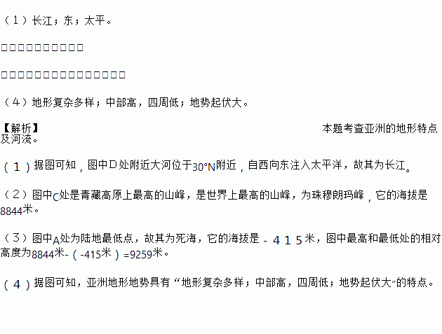 (1)图中D处附近世界著名的大河是_____,该河向____流,注入_____洋。