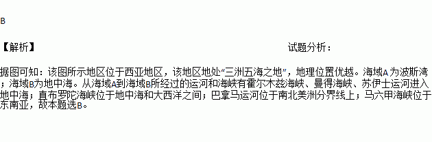 阅读图,完成:从海域A到海域B所经过的运河和海峡有