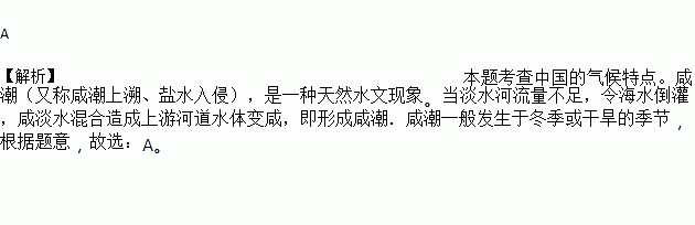 咸潮,主要是由旱情引起的,由于雨量少,使江河水位下降,导致沿海地区海水通过河流倒流到内陆区域。广东沿海咸潮多发生在( )