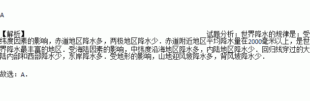 A. 赤道附近地区 B. 中纬度内陆地区