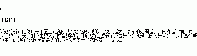 相同大小的地图,在下列比例尺中,表示范围最小的是( )