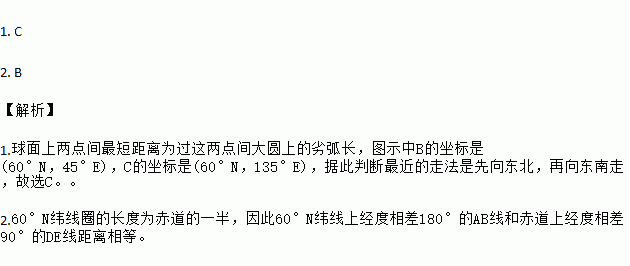 1.从B地到C地,若不考虑地形因素,最近的走法是( )