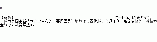 B ¡¾½âÎö¡¿Î»Óھɽðɽ¶«ÄϵĹè¹È£¬³ÉΪÃÀ¹ú¸ßм¼Êõ²úÒµÖÐÐĵÄÖ÷ÒªÔÒòÊǸõصØÀíλÖÃÓÅÔ½¡¢½»Í¨±ãÀû¡¢¸ßµÈԺУ¶à£¬¿Æ¼¼Á¦Á¿ÐÛºñ£»¹Ê´ð°¸Ñ¡B¡£
