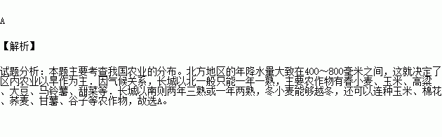 上图中A所在地区主要农作物及其熟制的说法,正确的是