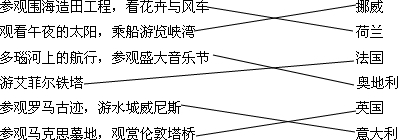 点评:熟练掌握世界各国的旅游景点,根据其旅游景观正确连线.