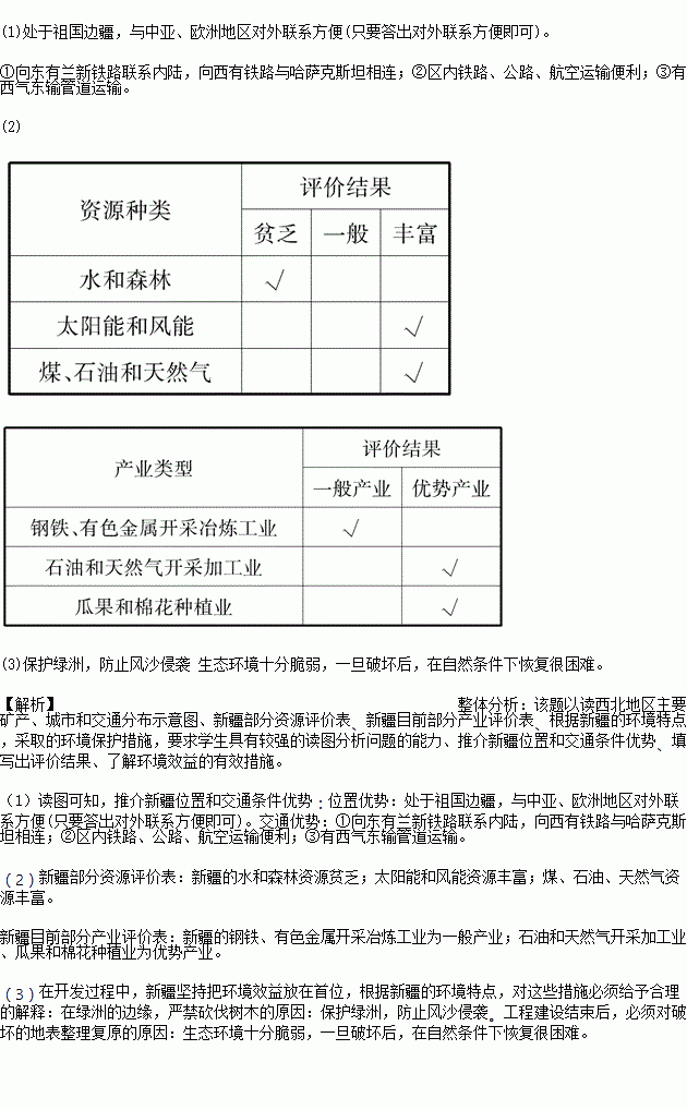 (3)在开发过程中,新疆坚持把环境效益放在首位,为此出台了很多限制措施,请根据新疆的环境特点,对这些措施必须给予合理的解释。
