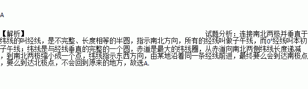 C. 由某地沿着同一条经线前进,最后还能回到这条经线上