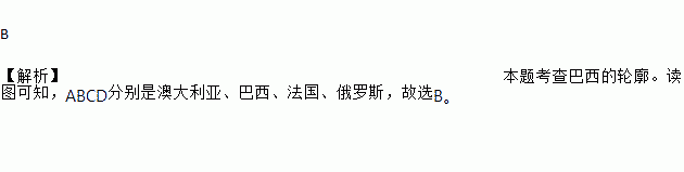 下列国家图中(比例尺不同),表示巴西的是( )