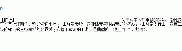 A. ②处是有“塞上江南”之称的宁夏平原