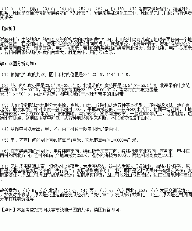 £¨6£©¼×´åÔÚ±û´åµÄ ·½Ïò£»ÒÒ´åµÄú¿ó²úµØµ½ÎÂȪµÄÏà¶Ô¸ß¶ÈÊÇ Ã×£®