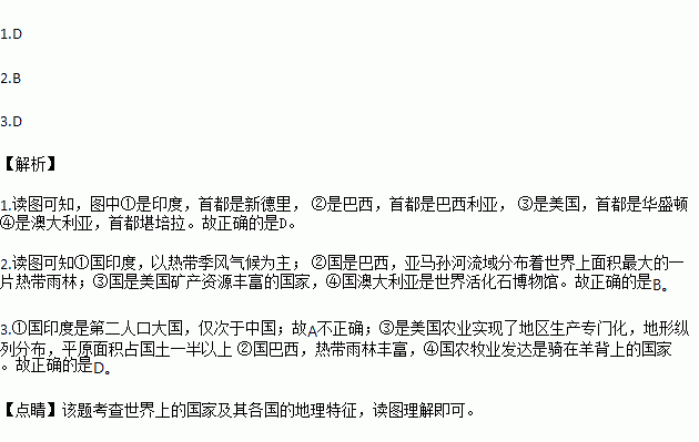 C. ③国是世界活化石博物馆 D. ④国矿产资源贫乏