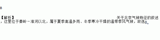 关于北京气候特征的叙述,正确的是( )
