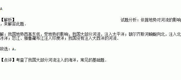 受地势的影响,我国的大部分外流河注入 ( )