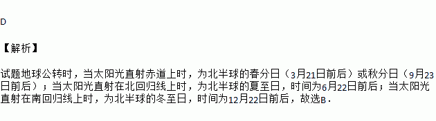 A. 3月21日前后 B. 6月22日前后 C. 9月23日前后 D. 12月22日前后
