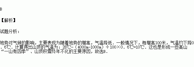 如下图,如果在A地测得气温为28℃,若只考虑地形因素的影响,则C地的气温是: