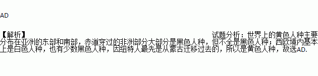 有关世界人种分布的叙述,正确的是( )