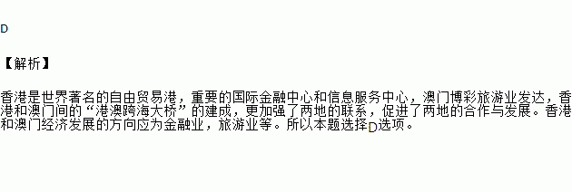 D. 内地有丰富的资源,港澳有雄厚的经济基础,应将香港和澳门建成大型的重工业基地