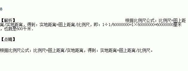 在1:60 000 000的地图上,1厘米代表实地距离是 ( )
