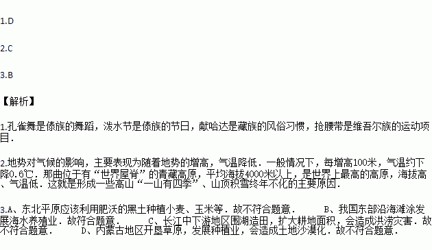1.下列民俗活动与所在区域及所属民族组合正确的是( )