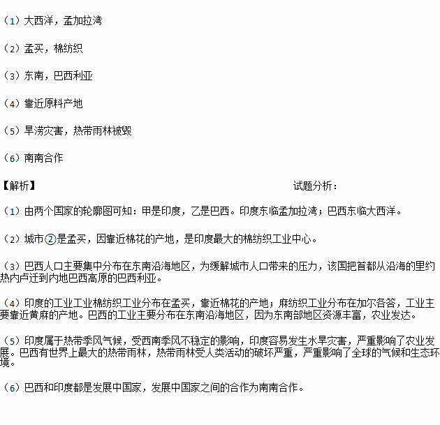 £¨4£©¼×¡¢ÒÒÁ½¹ú¹¤Òµ·Ö²¼µÄÏà֮ͬ´¦ÊÇ________________________________¡£