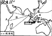 (2)马六甲海峡位于马来半岛和苏门答腊岛之间,沟通了太平洋与印度洋.马六甲海峡是亚洲,非洲,欧洲,大洋洲之间相互往来的海上枢纽,交通位置十分重要.日本每年从非洲和中东地区进口石油和大量原料,并出口商品,都由马六甲海峡输送,所以海峡被视为日本的“海上生命线”.