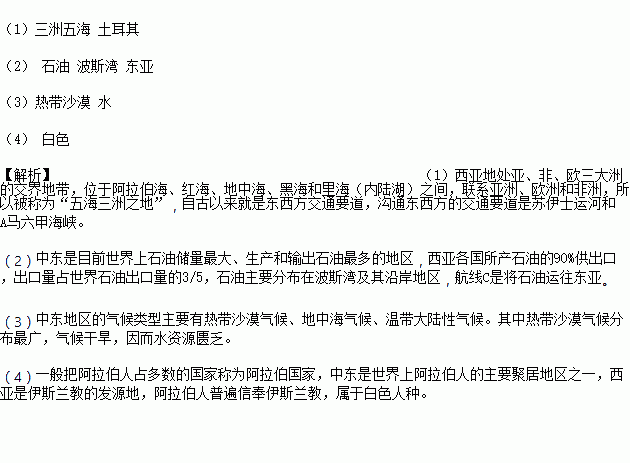 (3)中东气候以______ __气候为主,因而 资源匮乏