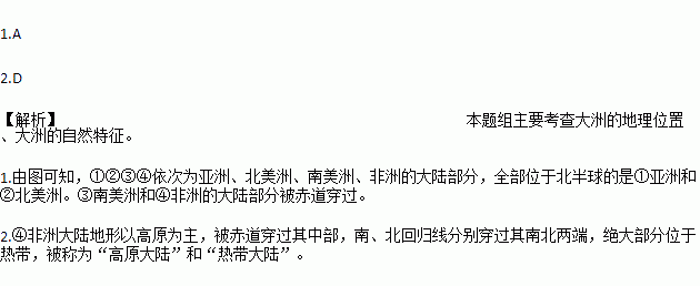 2.被称为“高原大陆”和“热带大陆”的是( )