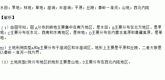 (3)土地类型C所分布地区的地形主要是________ 。土地类型D主要分布在________ 地区。